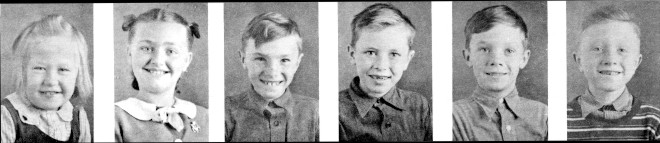 October 5: 5th graders are Robert Schilling, Donna Belle Ehrichs and Catherine Brandt; 6th graders are Ruth Brady, Alvin Jansen, Marian Ranniger, Donna Schacht and Roy Soll; 7th graders are Merlin Anderson and Sophie Brandt; 8th graders are Olivia Bueltel, Shirley Ann Ehrichs and Betty Lou Ehrichs.