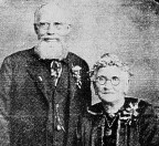 The Fischers observed their fiftieth wedding anniversary with services at the Zion Lutheran Church, at that time located on the south side of Second Street two blocks east of their home. The couple rode in a car to the church, while a procession of a hundred and forty-five relatives and friends marched the distance. Mrs. Fischer's dress was fashioned by her daughter, Ella Schade, and she carried a bouquet of yellow tea roses. An appropriate sermon for the occasion was delivered by the Reverend J.M. Ansorge. Mrs. Ansorge played the "Wedding March". After the services a dinner for one hundred, twentyeight guests was held at their home.