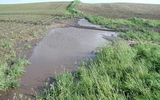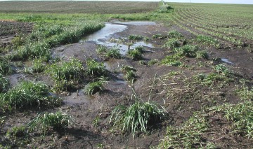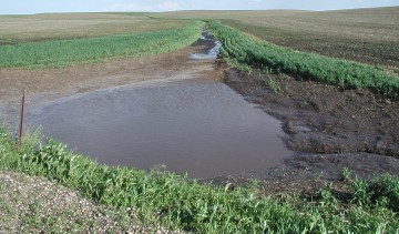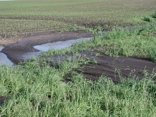 To the left you see the catch basin filled up with water from the tilled field after the June 2 rain. |