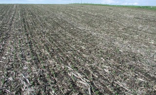 This image shows the bottom of the waterway on our no-tilled farm by the road. We dug out this part of the waterway the fall of 2000 with our dirt scraper. This waterway has been cleaned out twice now in 10 years. |