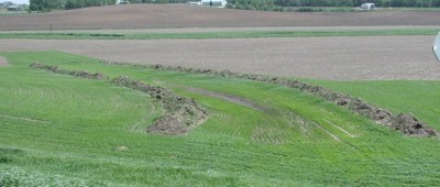 Below (picture taken in May) is another area where soil was hauled out of a water way on a different farm.