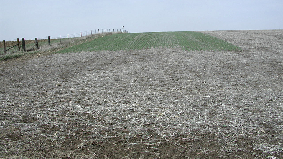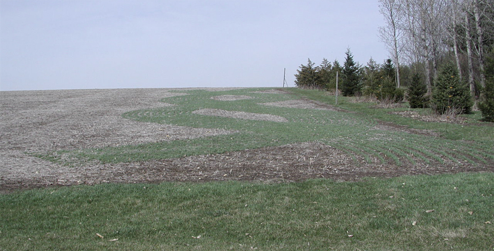 Example of rye left on one of the steeper endrows of soybean stubble going into corn.