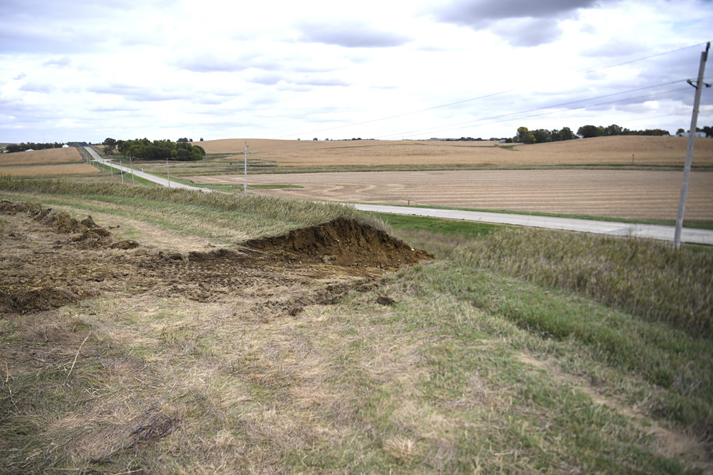 Subsoil had been previously borrowed from this sidehill back in the 1960s when the county wanted to reshape the road and fill in the valley between the 2 large hills in that road.