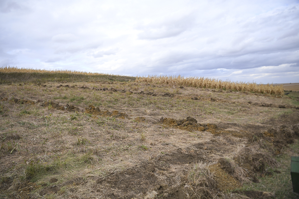 In our case on this hill an offset terrace had to be built, which makes it impossible to farm with the present-day huge planters, sprayers, and combines.