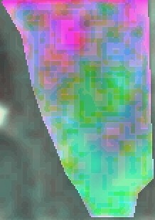 Fall yield map Note the area marked below which shows where we sprayed for bean leaf beetle on August 2nd. The bottom part of this area is where the most BLB activity was when we sprayed Aug 2nd and it showed up on July 15 Earthscan image to the right as the low vigor color of magenta which is circled in black. ![]() |