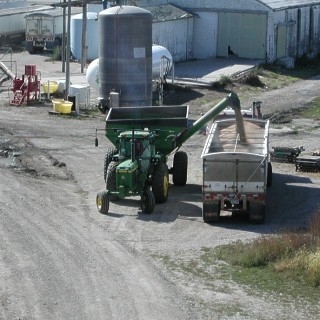Lonny Grau driving the John Deere 4630 and Brent Auger Cart with