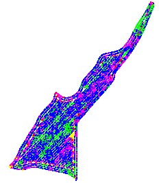 Yield map of the above soybean field (55 Bu/A average for the field).