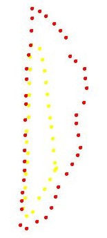 To the left is the border of a 120 acre farm. The Red border is the 1999 Nightcrawler border. The Yellow border is the 1998 Nightcrawler border. In the last 10 years we have been "seeding" nightcrawlers on our No-Till farms. This farm has been No-Tilled for 15 years and we are now getting Nightcrawlers established. |