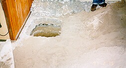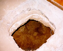 | Above are the holes they made in the concrete floor and they had to dig down about 6 feet to get to the cream cans.