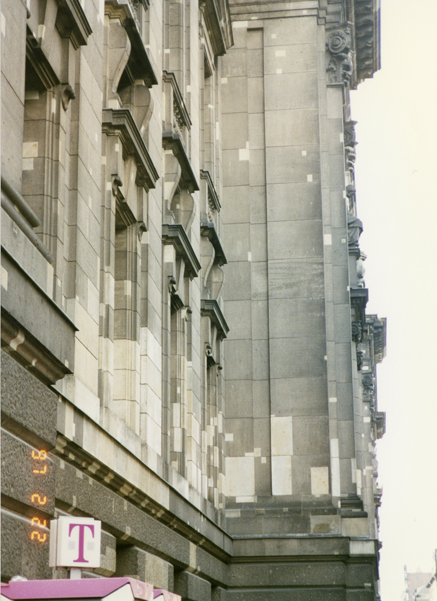 The lighter squares are where sections of buildings were damaged by bullets and artillery during the war and arms fire between the East & West.