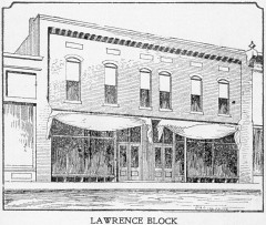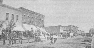 Returning to the east side of Main Street, we have, first the general store of Benson & Vauhn. Chapman Bros., next door, have just arrived with a splendid assortment of dry goods. Barber & Turner are building a large drugstore opposite the Post Office. Martin & Launderville, hardware, is next in line with Lathrop's restaurant adjoining. Next come the saloons of W. E. Heitman and John Marks. Dr. T. S. McKenna has an office on Main Street opposite Callimore & Priest. Mr. Barber is erecting a fine two story building on the corner of Main and Third Streets. On the opposite side of Third Street is the drug store of L. S. Knox adjoining which is the boarding house and bakery of Miles Woolman.
