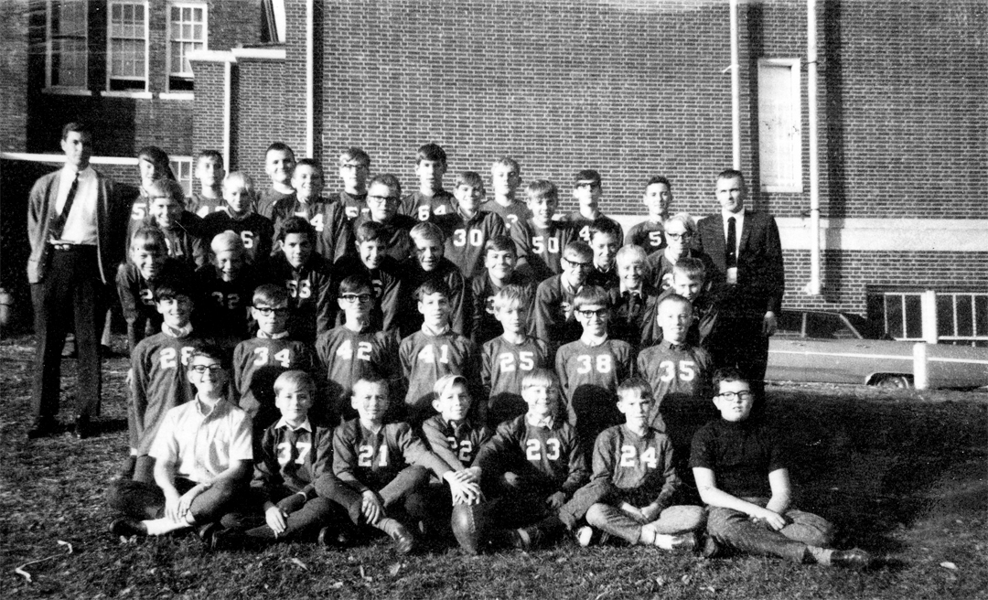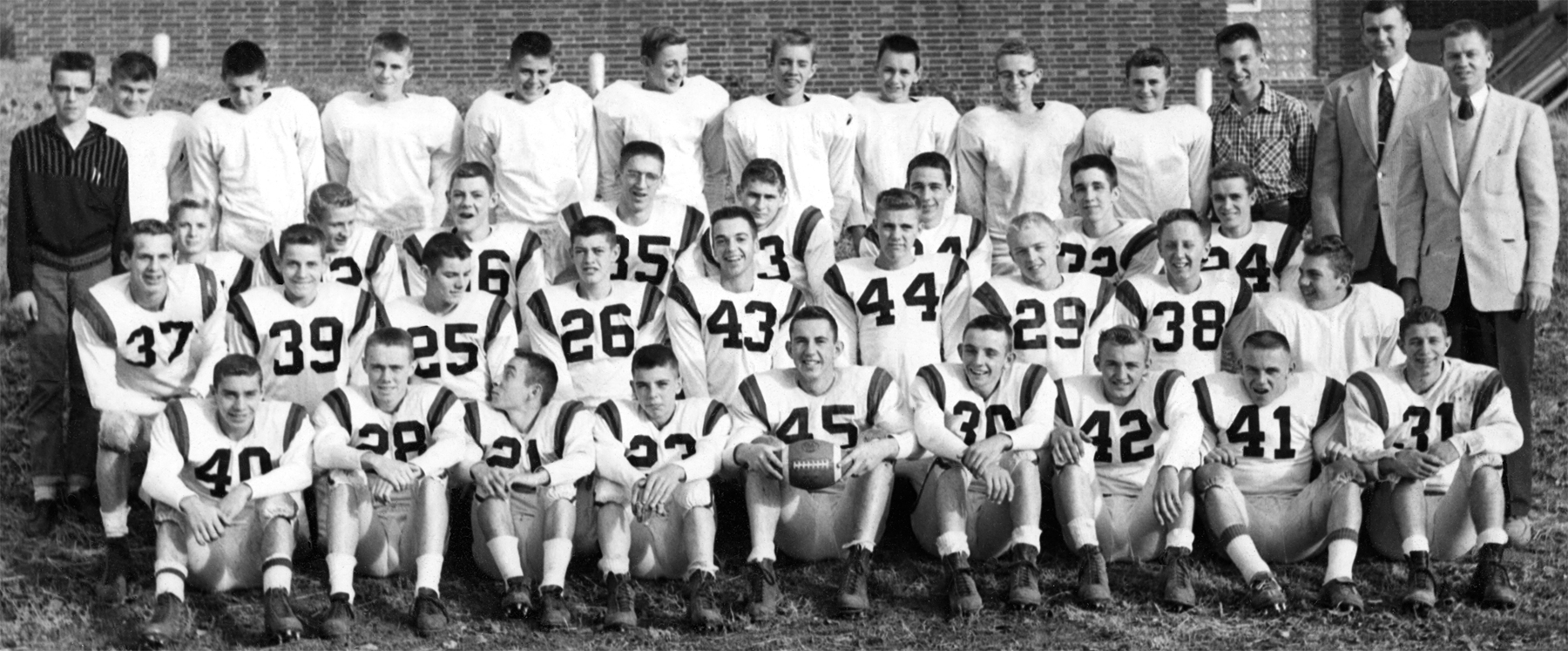 Front: #31 Larry Zerwas, #26 Ray Fink, #25 Robert Froyd, #28 Roger Hagedorn, #42 Robert Laverty, #23 Jim Ramsey,