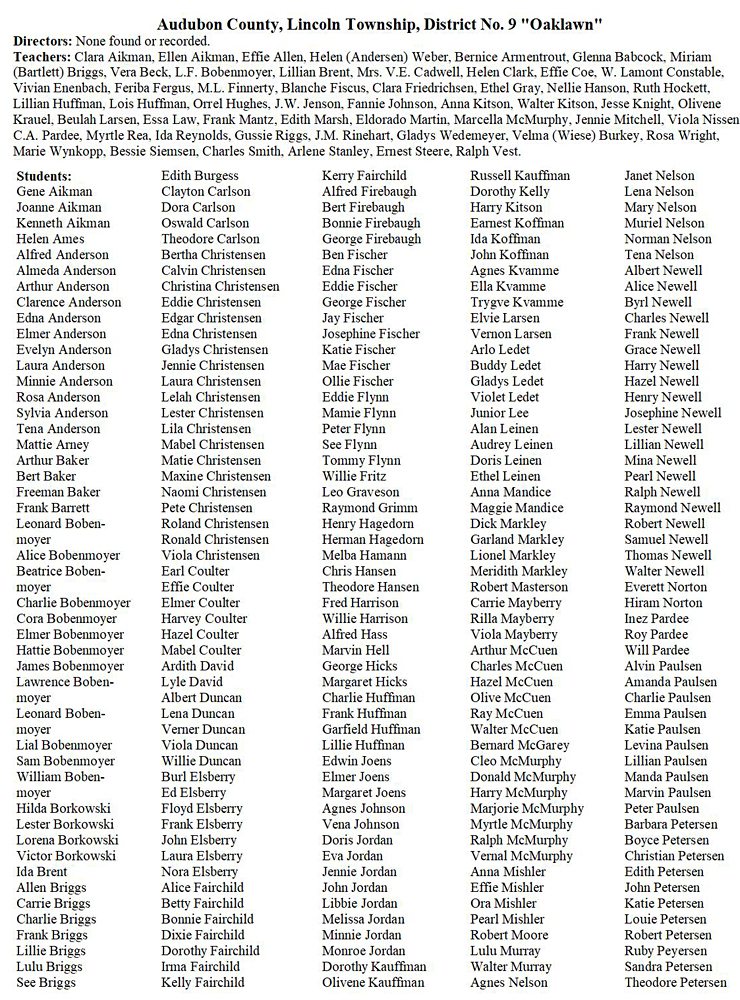 Darlene Sextro, Sylvia Shamp, Beverly Souter, Lowell Stribe, Roland Valentine, Wayne Vennink, Paul Vollstedt, John Wagner, Elaine Willenborg, Ardith Witt, Robert Wycoff, Arthur Zerwas