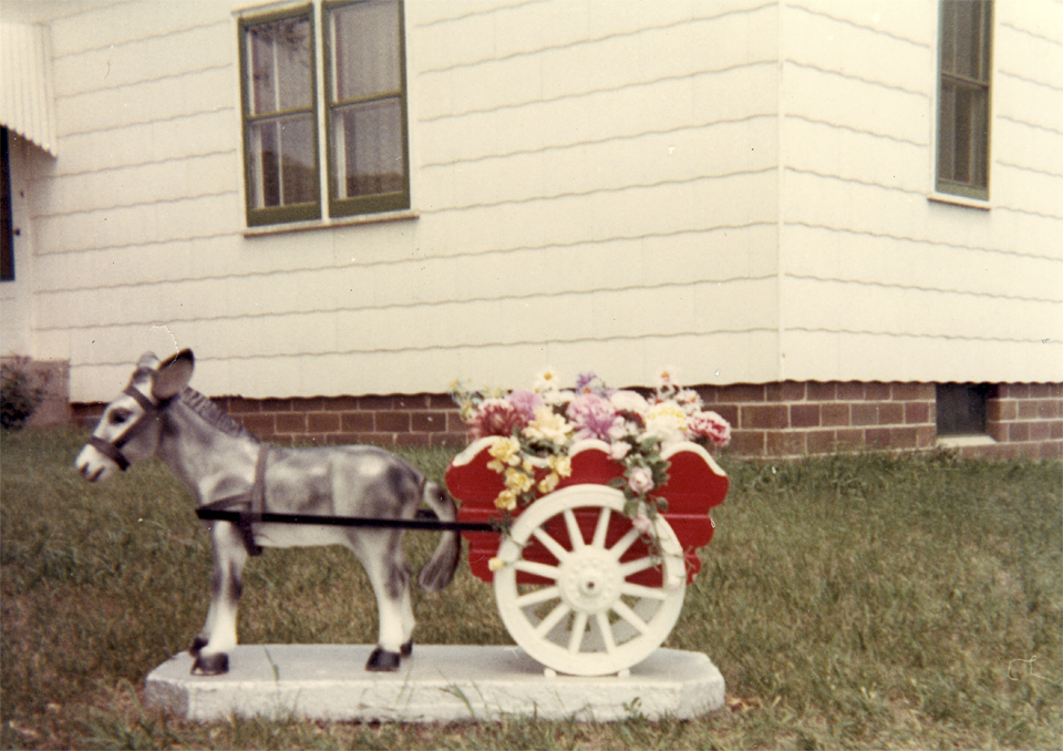 Milford McConnell's donkey/cart statue at 417 Tenth Street - 1967