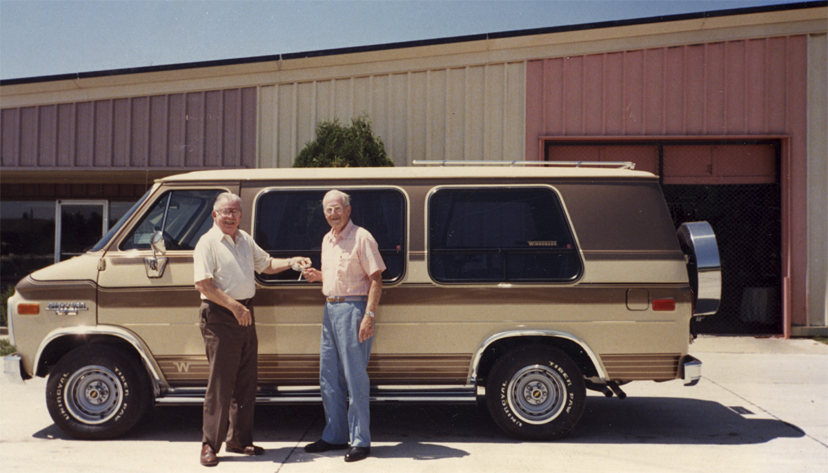 Eddie Fischer gives Lyle Arp the keys to his new van July 30, 1987