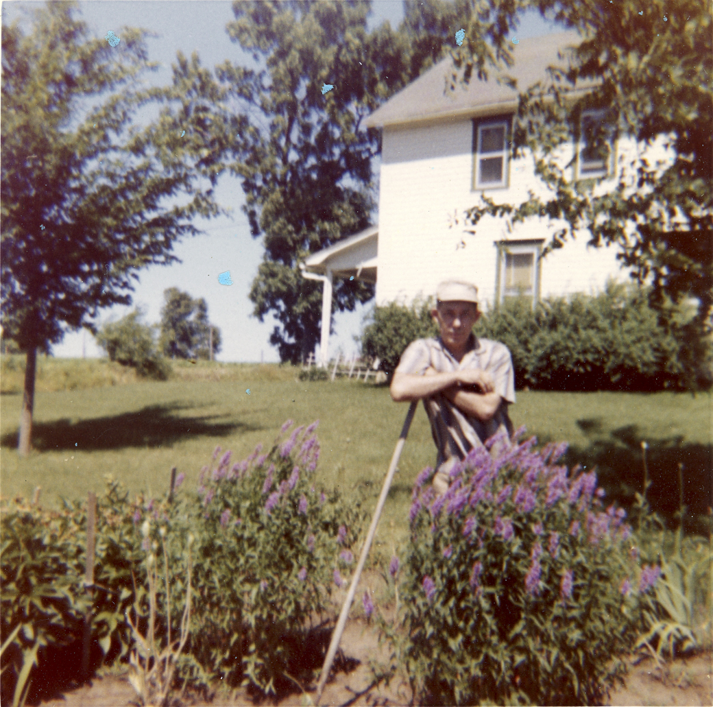 Freeland in his garden along RR Street