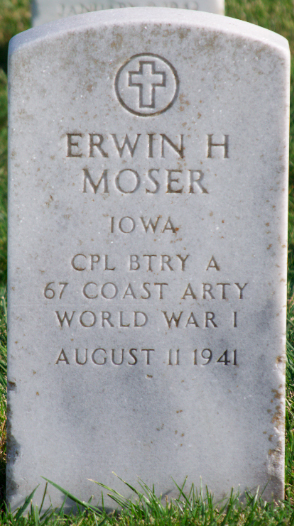 He is survived by his wife, the former Ruth "Kittie" Zobel of San Francisco, his mother, Mrs. L.F. Moser of Manning; three brothers: Albert E. Moser of Ames; Ralph W. Moser of Onawa and half-brother Camil L. Moser, Los Angeles; two sisters, Melitta (Mrs. Charles L.) Palmatary, Wilmington, Delaware, and Marie (Mrs. Daniel R.) McGrath, Manning, also his grandmother, Mrs. Caroline (Uhde) Von Egert, Los Angeles.