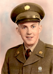Merlyn was inducted into the Army January 8, 1956. He trained at Fort Leonard Wood, Missouri, for eight weeks; Fort Hood, Texas, for eight weeks; Johnson Air Force Base, Tokyo, Japan, for one year; and Oppama Naval Base in Yokohama, Japan, for four months. Merlyn served as an Anti-Aircraft Artillery Gun Crewman and Truck Driver. Pfc. Irlbeck received the Good Conduct Medal and was discharged October 20, 1957. Merlyn commented that when leaving Japan, the last person he knew was Ronnie Schilling and when arriving in Fort Lewis, Washington, the first person he knew was Ronnie Schilling. Merlyn notes that the only time he spent on an Army base was for training, the rest of the time he was on an Air Force or Naval base.