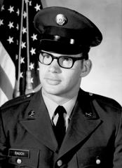 David L. Rauch was inducted into the U.S. Army February 8, 1972. Following basic training at Fort Leonard Wood, Missouri, advanced infantry training at Fort Polk, Louisiana, and APC driver instruction at Fort Knox, Kentucky, he was assigned to the Headquarters Company, 1st Battalion 39th Infantry Division USAREUR, stationed at Baumholder, Germany. SP4 Rauch served as physical therapy specialist at the U.S. Army General Hospital at Landstuhl, Germany.
