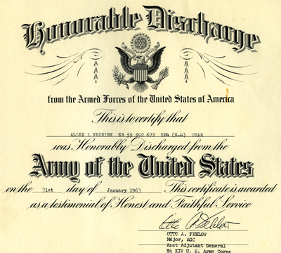Allen was honorably discharged at Fort Sheridan on October 14, 1958, after obtaining the rank of E4.