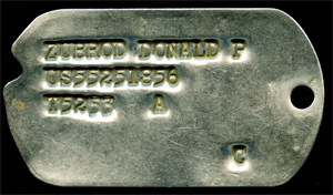 Then Dave grabbed those 2 dog tags out of the pocket of his T-shirt and handed them to Don. Don asked whose tags they were and Dave quipped "look." Glancing at them Don said "these aren't mine!" and Dave asked "what does the name say?" Don exclaimed "These are my dog tags! - where did you get them?" After explaining the whole story to Don he then asked if he could have them. Dave said "of course - they are yours!"