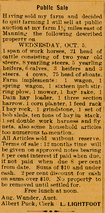 at his former home Manning, Iowa, Saturday. Mr. Wunder had been a resident of