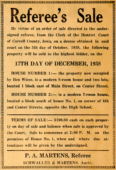 Mr. Wiese was born March 27, 1878, at Grand Mound, Clinton County Iowa, to Joachim, Jr. and Emma (Wunder) Wiese. On July 19, 1902, he was married to Ida Hagedorn at Denison. Thirty years ago the family moved to Manning, where they have since made their home. Mr. Wiese was a painter and paper hanger.
