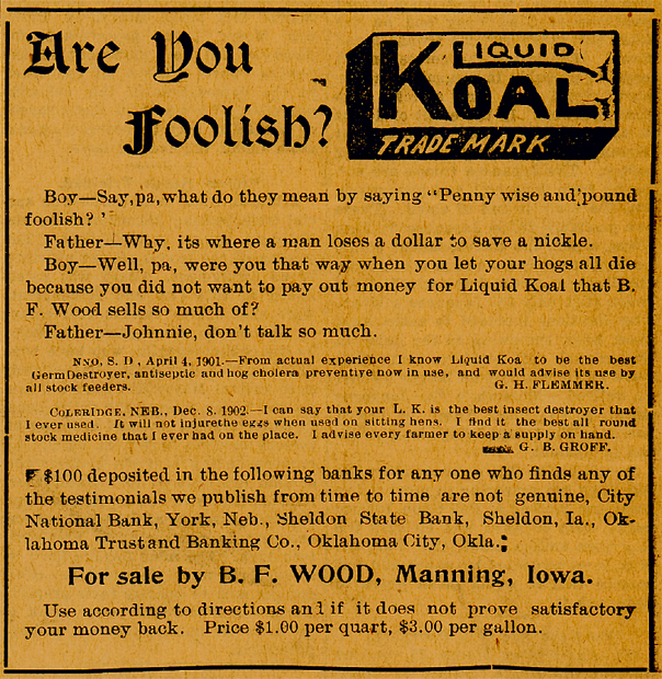 The above notice of B.F. Wood's death came to us last Friday. We knew nothing of it until then, hence we are not to blame for not giving it sooner. Mr. Wood was a good upright citizen of Manning for many years; in fact, he was one of the first to settle here and is best known by all the old settlers. We regret to hear of his death as he had always been in the best of health while here. The Monitor joins with his many friends here in sympathy for the bereaved wife who is left behind.