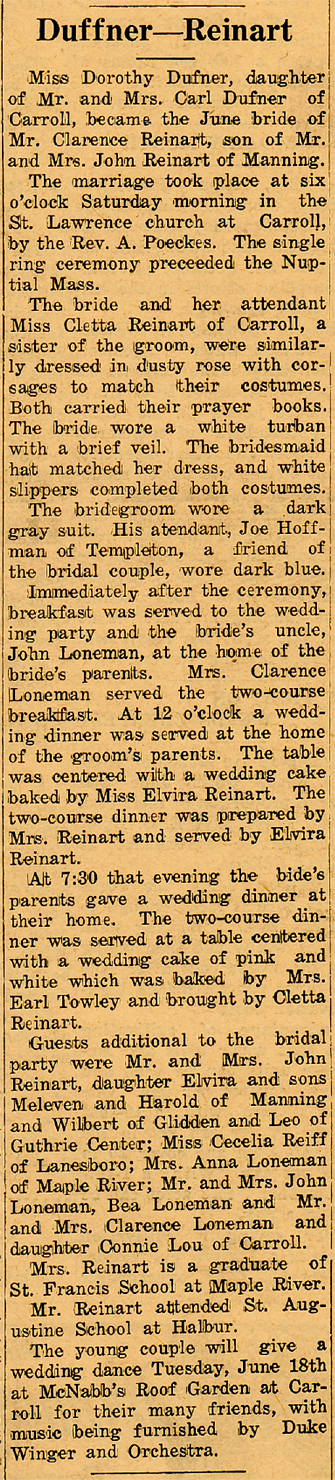Son of John and Emma (Schenking) Reinart, he was born January 25, 1909, in Halbur.