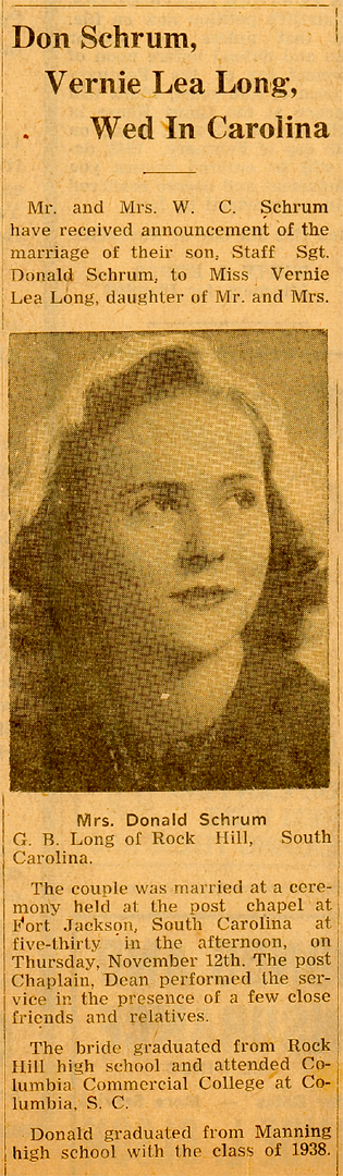 1920, in Manning, Iowa, to William and Alice (Kroger) Schrum. He was married to Vernie Long.