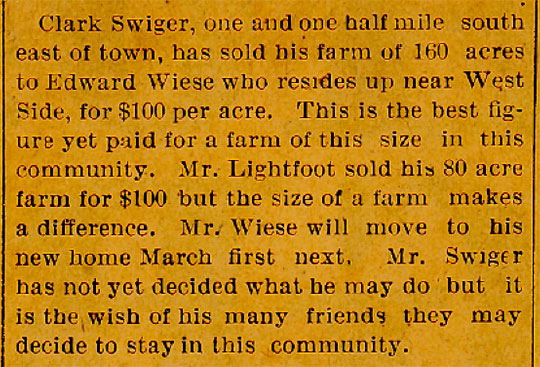 Mr. Wiese is survived by a son, Lester Wiese, Manning, Iowa, and two daughters, Mrs. W.J. Jones, La Crosse, Wisconsin, and Mrs. A.L. Nelson, Salem, Wisconsin. Surviving also are six grandsons, among them Sam Wiese and Gene Wiese of the firm of Wiese & Sons. Funeral services were held at Manning March 27 and burial was in the Manning Cemetery.