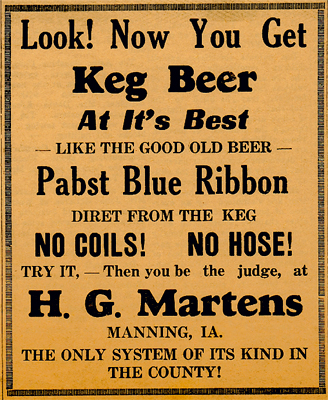 He was born May 10, 1831, in Washington Township, the son of Detlef and Lena (Ehlers) Martens, and as a young boy moved into Manning. He started work in a grocery store before going into partnership with his brother William in Martens Mercantile Co. In 1937, he began to operate a news stand and soda fountain. He retired in 1954.