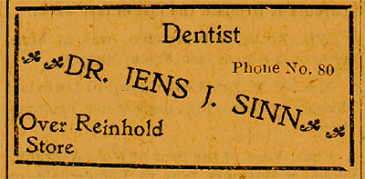 Dr. Sinn had practiced dentistry in the same office here following his graduation from Northwestern Dental College at Evanston, Illinois, in 1902. He retired a short time ago.