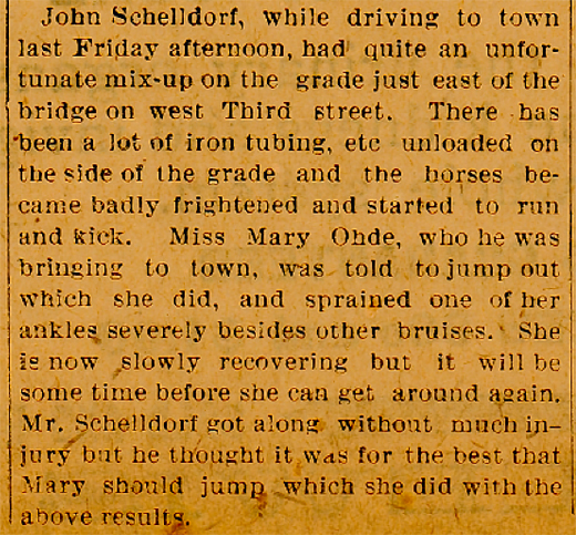 During the last ten months Mr. Schelldorf made his home with his daughter, Mrs. Emma Ohde, who took care of him. He died of old age and its attendant disabilities on Monday, November 14th, 1921, aged 83 years, 3 months, and 3 days. Funeral services were held from the Lutheran Church Thursday afternoon, Pastor John M. Ansorge officiating, and the body laid to rest beside his wife in the Manning Cemetery.
