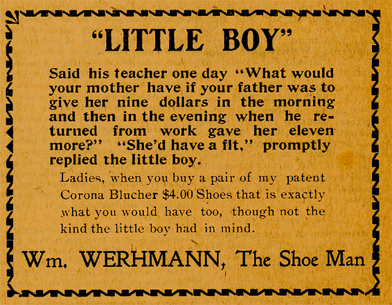 Mr. Wehrmann, son of Chris and Dorothea (Wiese) Wehrmann, was born March 14, 1879, near Manning. When he was eight years old, the family moved into town.