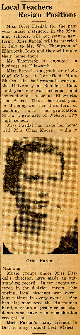 Oriet (Fardal) Thompson passed away January 31, 2012. Funeral service will be 2 p.m. Saturday, February 4, at the Trinity