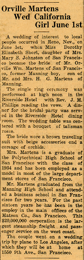 He was born in Manning on January 29, 1908. He graduated from Manning High School in 1926 and went to San Francisco, California, where he attended a business college for two years.