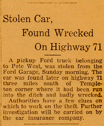 Son of George E. and Mary (Johnson) West, he was born October 5, 1890, near Battle Creek. In 1908 he moved to Mapleton and in 1913 to Manning. Mr. West operated a dray line, hauling mail and express until he retired in 1962.