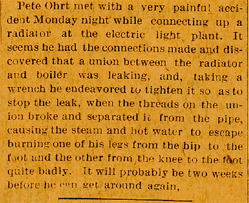 Mr. Ohrt and a brother built and operated the first electric light plant in Manning. He built the first garage in Manning and was the first Ford dealer here. He later sold the building to the Fred D. Ross & Company.