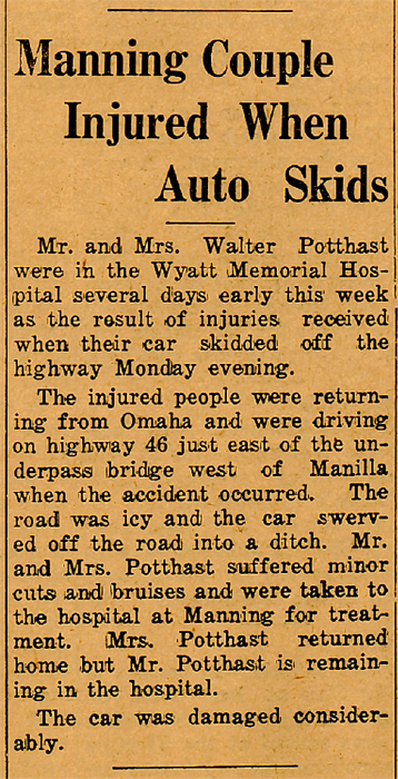 Mr. Potthast moved from Manning to the lake area a number of years ago. His wife died in 1920.