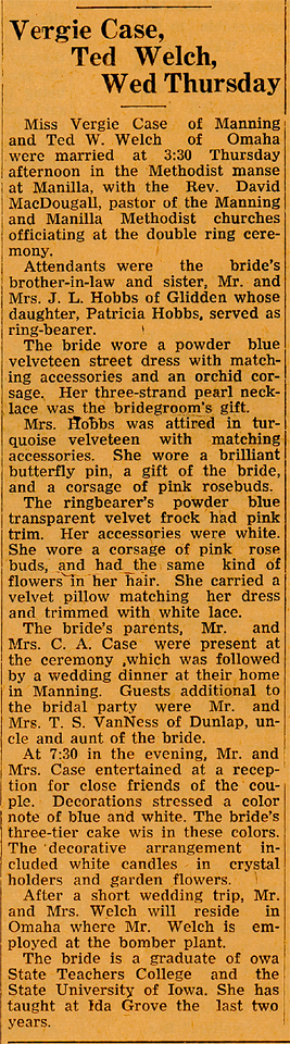 Vergie M. (Case) Welch, 90, of the 3000 block of Grand