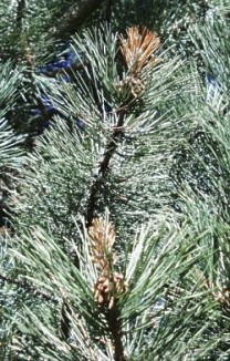 Brown spot infected needles look similar to Dothistroma infected needles. First spray should be applied when new needles are half grown and again about a 3 weeks later on wet years. |