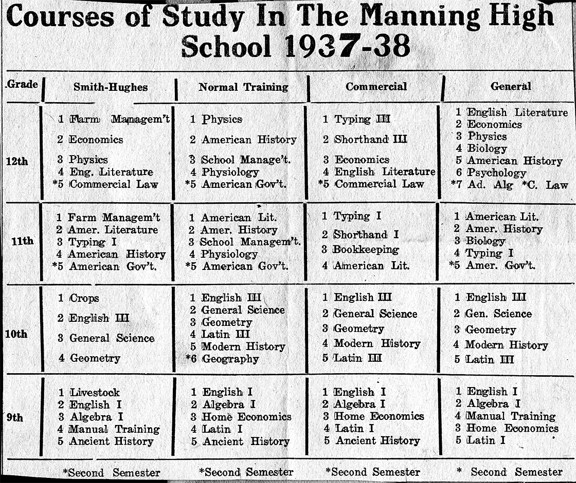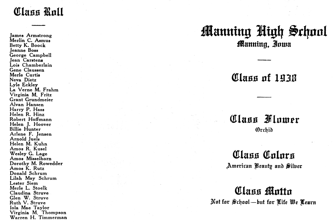 I'm including some non-family pictures and information from the class of 1938 to give a little insight into the time-frame when Jean attended Manning Schools...