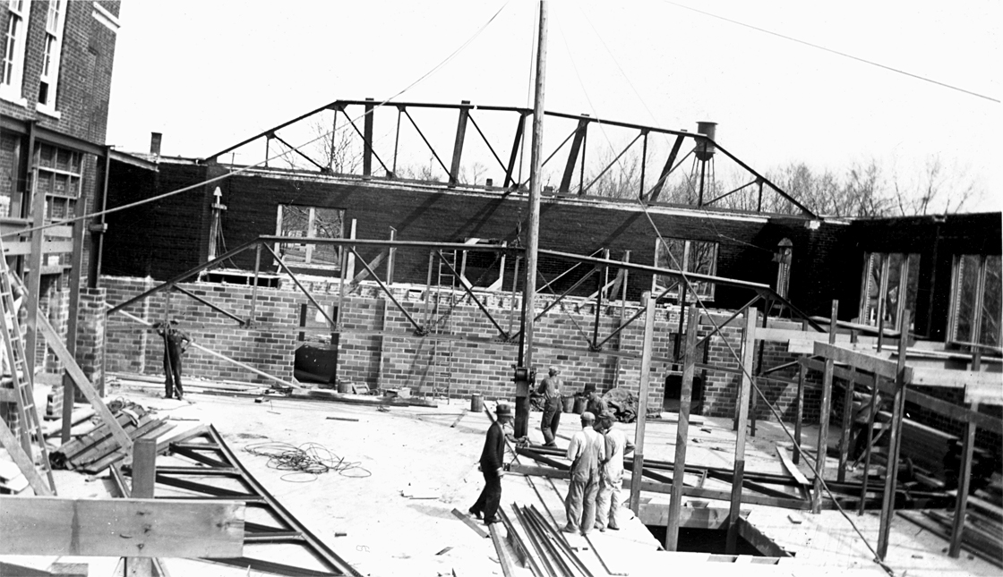 The new gymnasium was built in 1937 and the class of 1938 was the first class to use it for PT, sports, and to walk down the aisle for graduation.