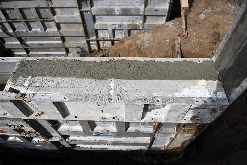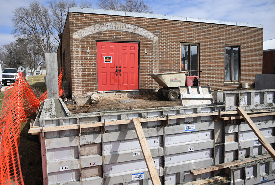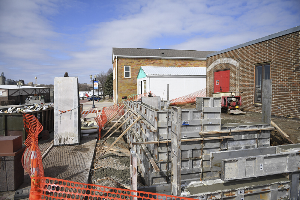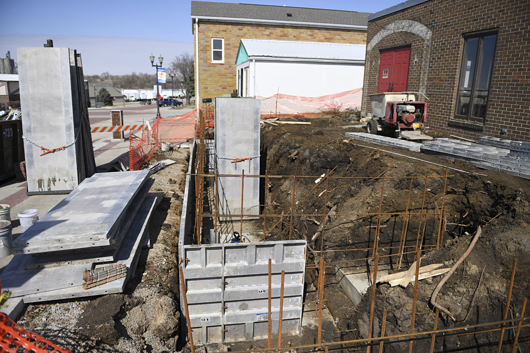 After splitting wood, I went to town to pick up the mail and noticed they poured concrete in the forms at the old Bunz business.