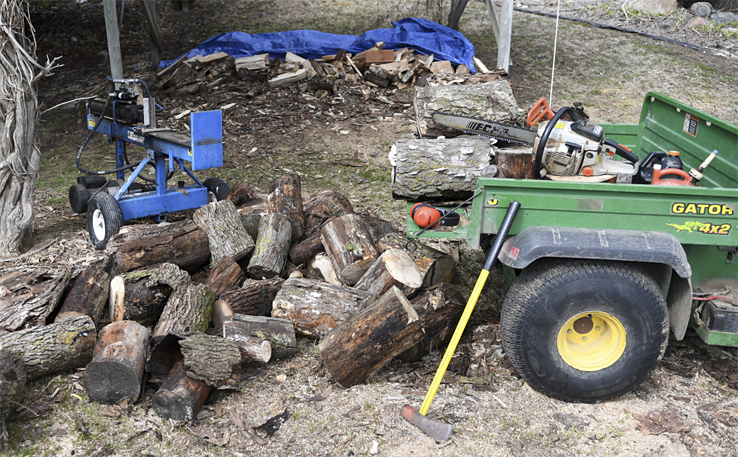 Here you see the wood splitter, and other tools I use to cut/split the firewood.