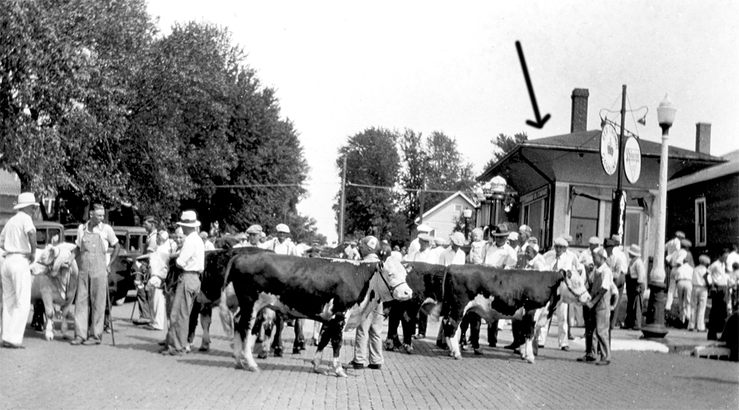 Arrow points to the Standard station - looking east on the intersection of Second Street & Main