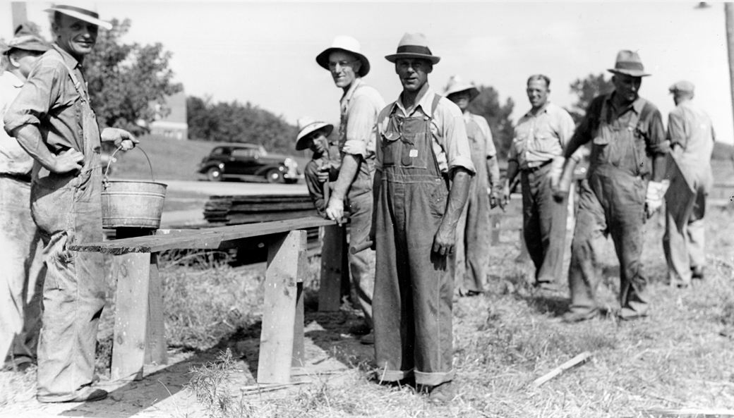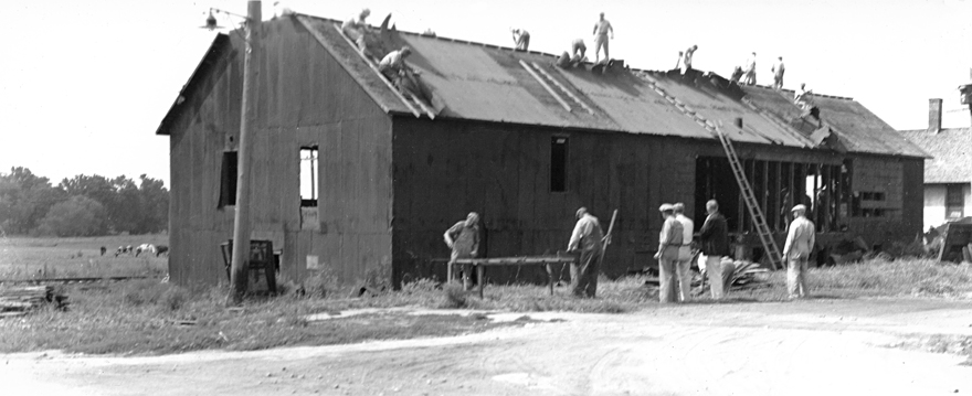 Some of the volunteers who tore down the building and later helped to build the Legion hall.