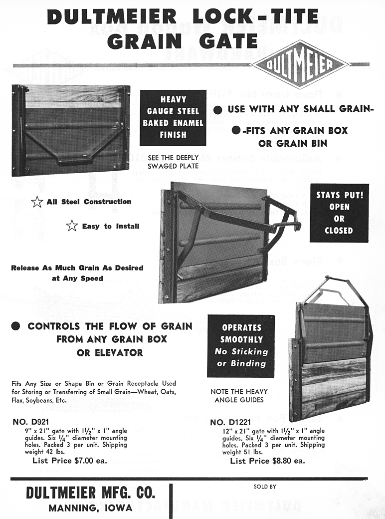 The grain gates go to all 48 continental states and are purchased by a number of truck body manufacturers, who buy direct. The item is not patented, so sales have to depend on quality and dependability.