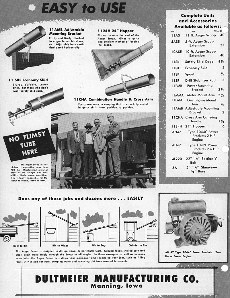 The company, known for many years as Dultmeier Manufacturing, is owned by Ralph McGrath, president; Albert Musfeldt, secretary-treasurer; and Clifford M. Johnson, vice-president and sales manager.